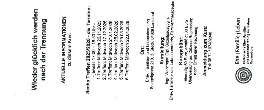 Die Katholische Ehe-, Familien- und Lebensberatung bietet demnächst einen Kurs "Wieder glücklich werden nach der Trennung" an.